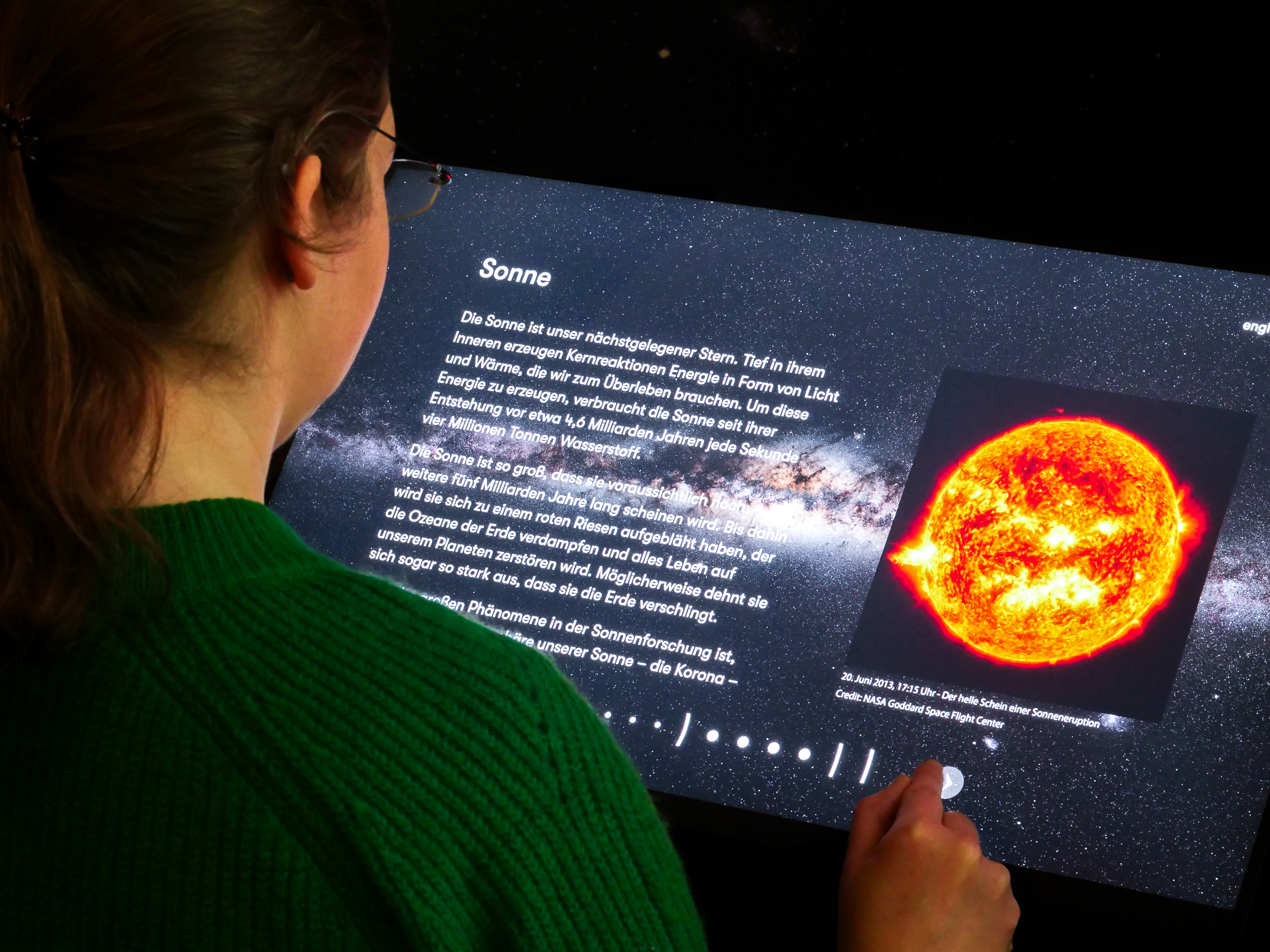Interaktiver Screen im Ausstellungsbereich »Meteorite«